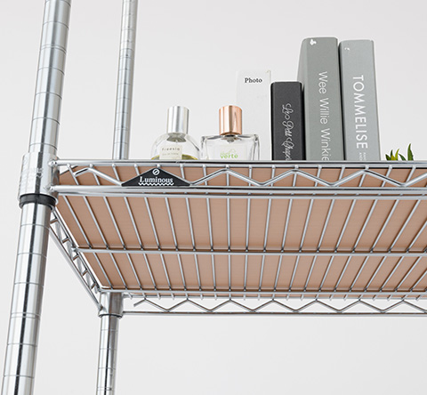 実際にラックにものを収納してみると、思いがけないニーズが見つかるもの。ルミナスの“区切る”パーツは、組み立て後のラックに取り付けられるので、実際にラックを使ってみてから、必要なパーツを追加することができます。スチールラックの抜け感を保ちながら、使い勝手も快適な自分だけのスチールラックをカスタマイズしてみてください。