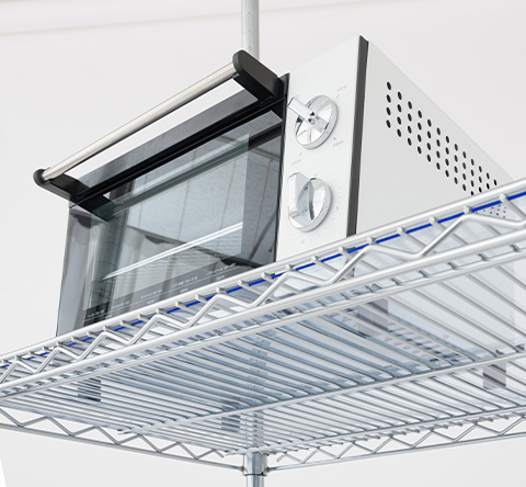 脚の細い家電製品や薄い本をはじめ、うっかりこぼした食品等もワイヤーの隙間に落ちず、お手入れカンタンです