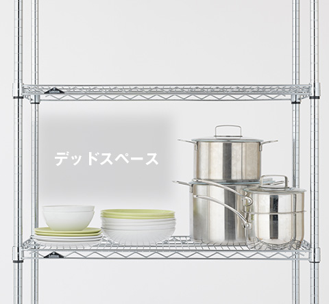 別売りの「ワイヤーバー」を取り付ければ、ラック内に生じたデッドスペースを収容スペースに変えることができます。