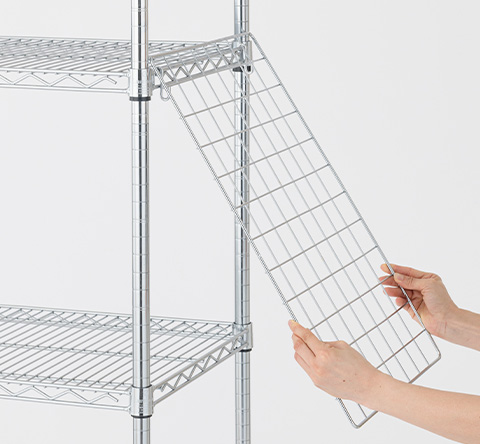 スチールラックの有効活用②-後から追加OK!“浮かせる”収納パーツ