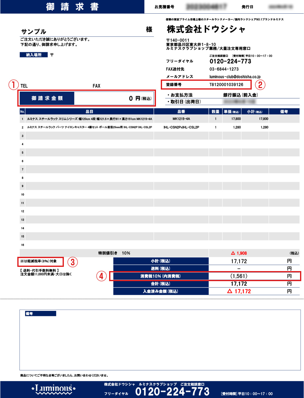 10月1日以降ご注文分の請求書、領収書・納品書より