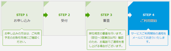 限度額はご利用実績に応じてが増えますので、継続的な発注にもご利用いただけます。
