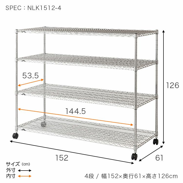 他の画像を見る NEW 交換保証対象品 送料無料 ネット限定 スチールラック 幅150cm 4段 ルミナスレギュラー 幅152×奥行61×高さ126cm NLK1512-4 ¥ 35,800 税込 カートに入れる