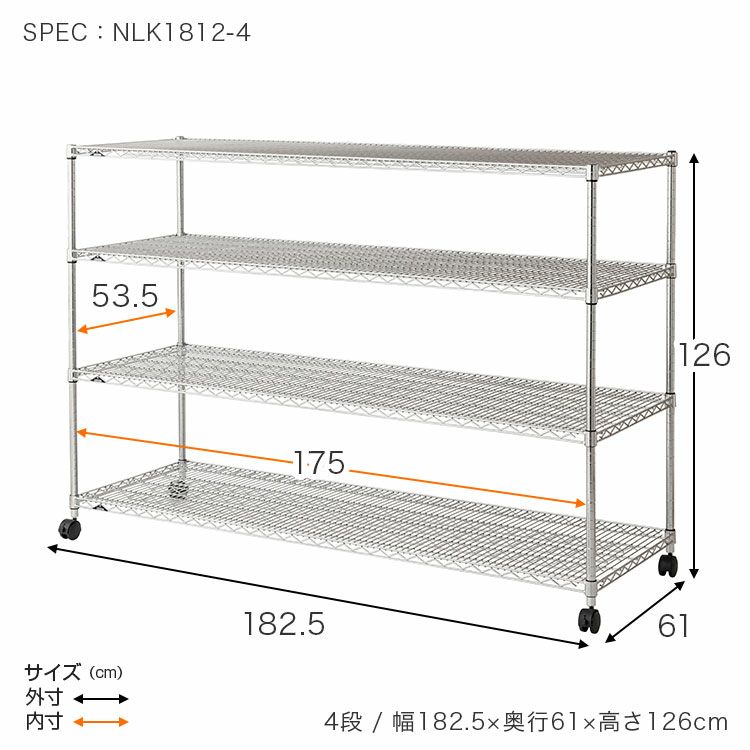 他の画像を見る NEW 交換保証対象品 送料無料 ネット限定 スチールラック 幅180cm 4段 ルミナスレギュラー 幅182.5×奥行61×高さ126cm NLK1812-4 ¥ 41,800 税込 カートに入れる