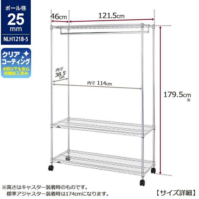 他の画像を見る 交換保証対象品 送料無料 ハンガーラック 幅120cm 3段 ルミナスレギュラー スチールラック 幅121.5×奥行46×高さ179.5cm NLH1218 ¥ 19,800 税込 〜 ¥ 税込 詳細を見る