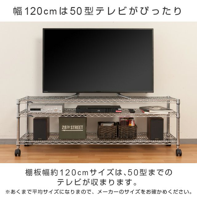 他の画像を見る 交換保証対象品 送料無料 ネット限定 テレビ台 幅120cm 3段 ルミナスレギュラー スチールラック 幅121.5×奥行46×高さ52.5cm NLH1250 ¥ 17,800 税込 カートに入れる