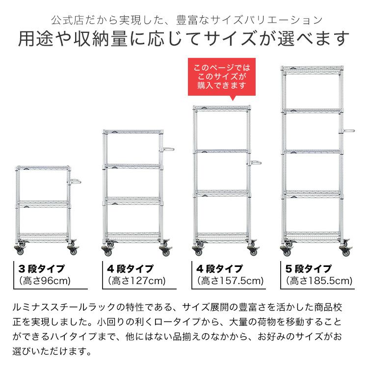 他の画像を見る NEW 交換保証対象品 送料無料 【予約商品】12月下旬入荷 ワゴンラック 幅60cm 4段 スチールラック カートワゴン ルミナスレギュラー 幅61×奥行46×高さ157.5cm NLH6015-4L75US ¥ 20,800 税込 カートに入れる
