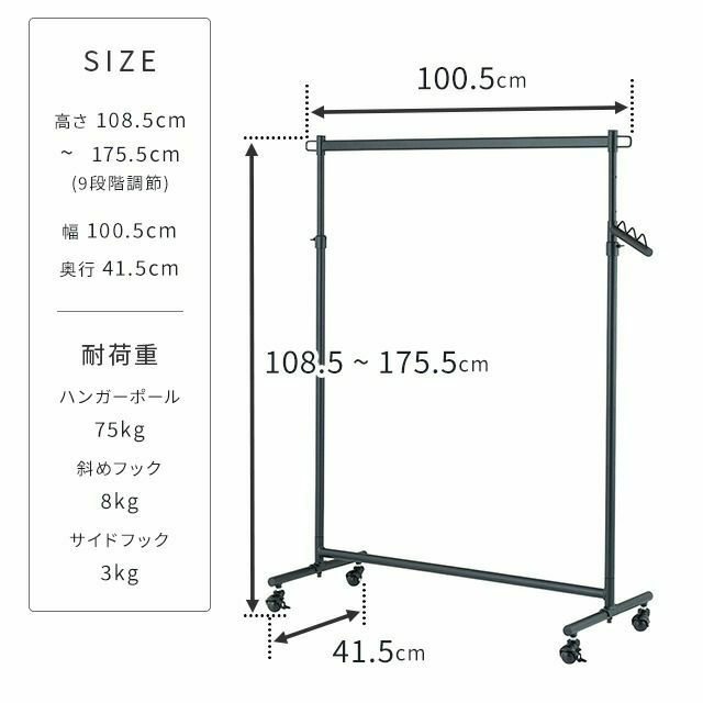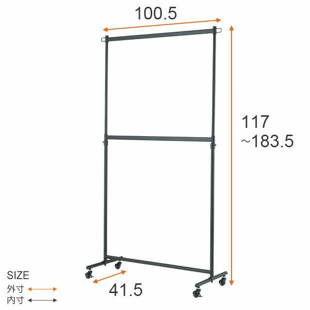 他の画像を見る 【アウトレット品】 ハンガープロ ホワイト 上下2段タイプ 伸縮式 幅100cm 幅100.5cm×奥行41.5cm×高さ117~183cm LIH2-100WH ¥ 7,480 のところ ¥ 4,980 税込 在庫切れ 詳細を見る