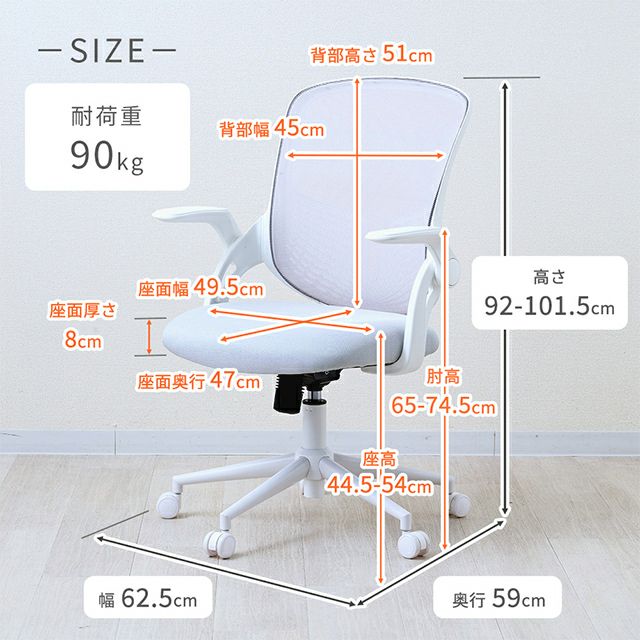 オフィスチェア メッシュ 肘付 幅62.5×奥行59×高さ92-101.5cm EPRC
